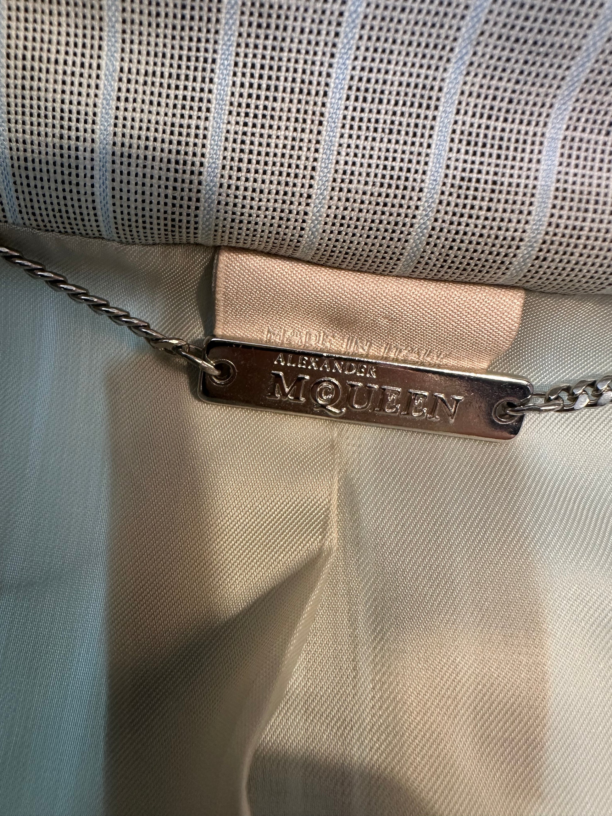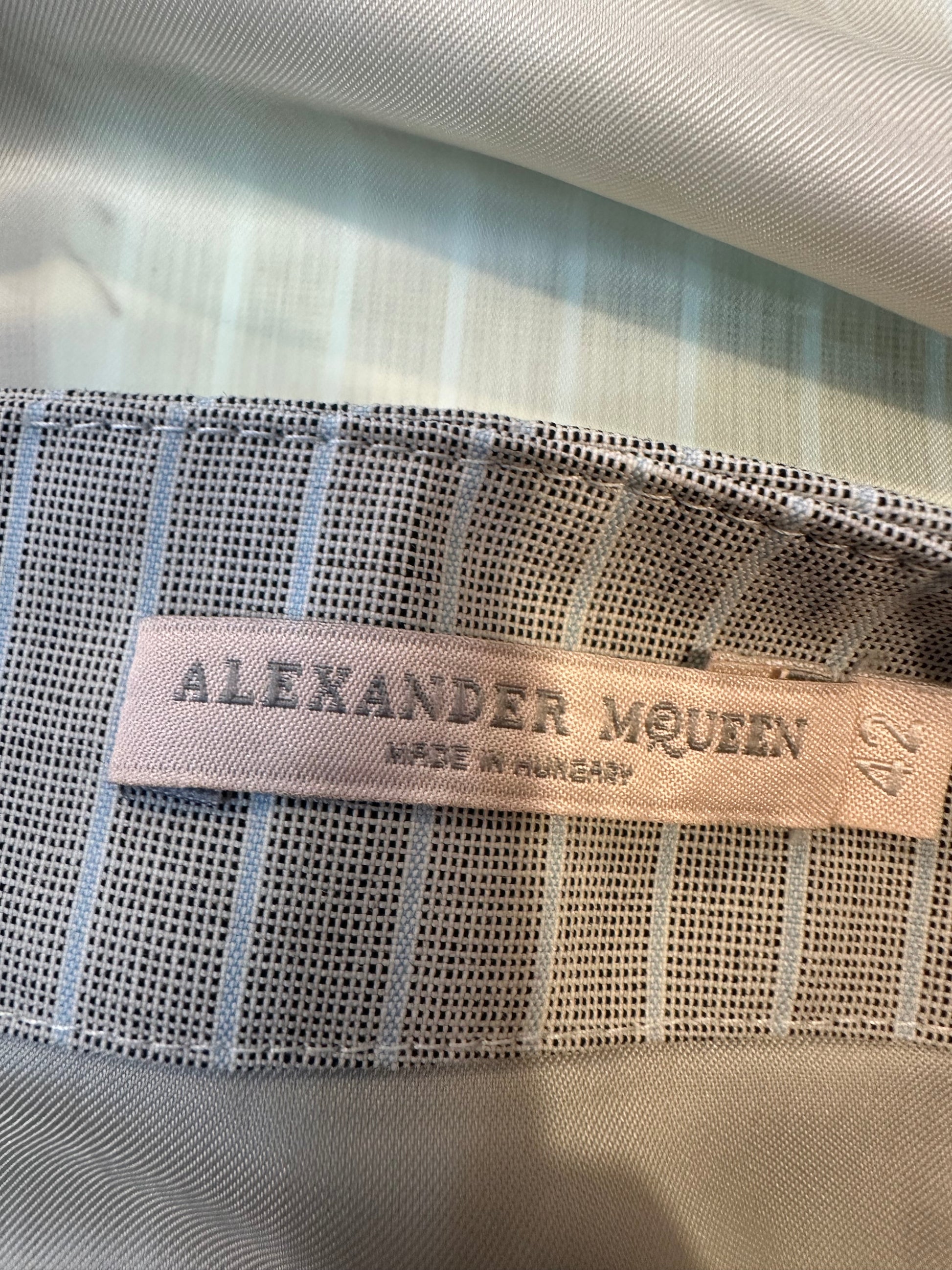 The Alexander McQueen Pre-Fall 2010 Pinstripe Skirt Suit is a stylish and sophisticated vintage ensemble that captures the essence of modern elegance. This meticulously crafted set features classic pinstriped fabric, delivering a sharp and refined look perfect for power dressing and fashionable day-to-night transitions. With its tailored silhouette and interesting angled pockets, the suit reflects McQueen’s visionary design and attention to detail. Ideal for those who appreciate timeless style with a contemporary twist, this rare vintage find adds a confident, polished edge to any wardrobe. Shop The Kit Vintage statement earrings for a classic, bold look.
