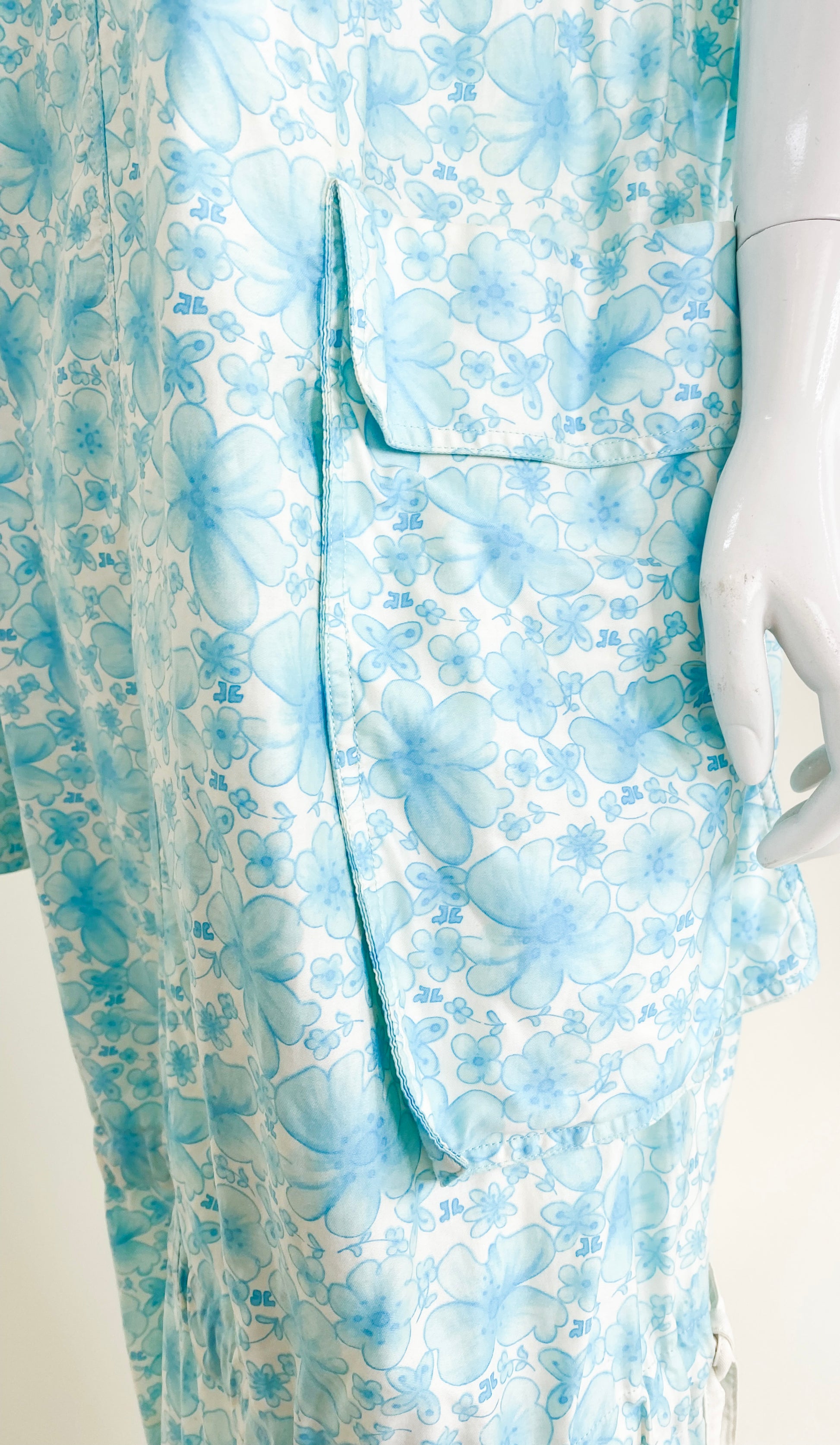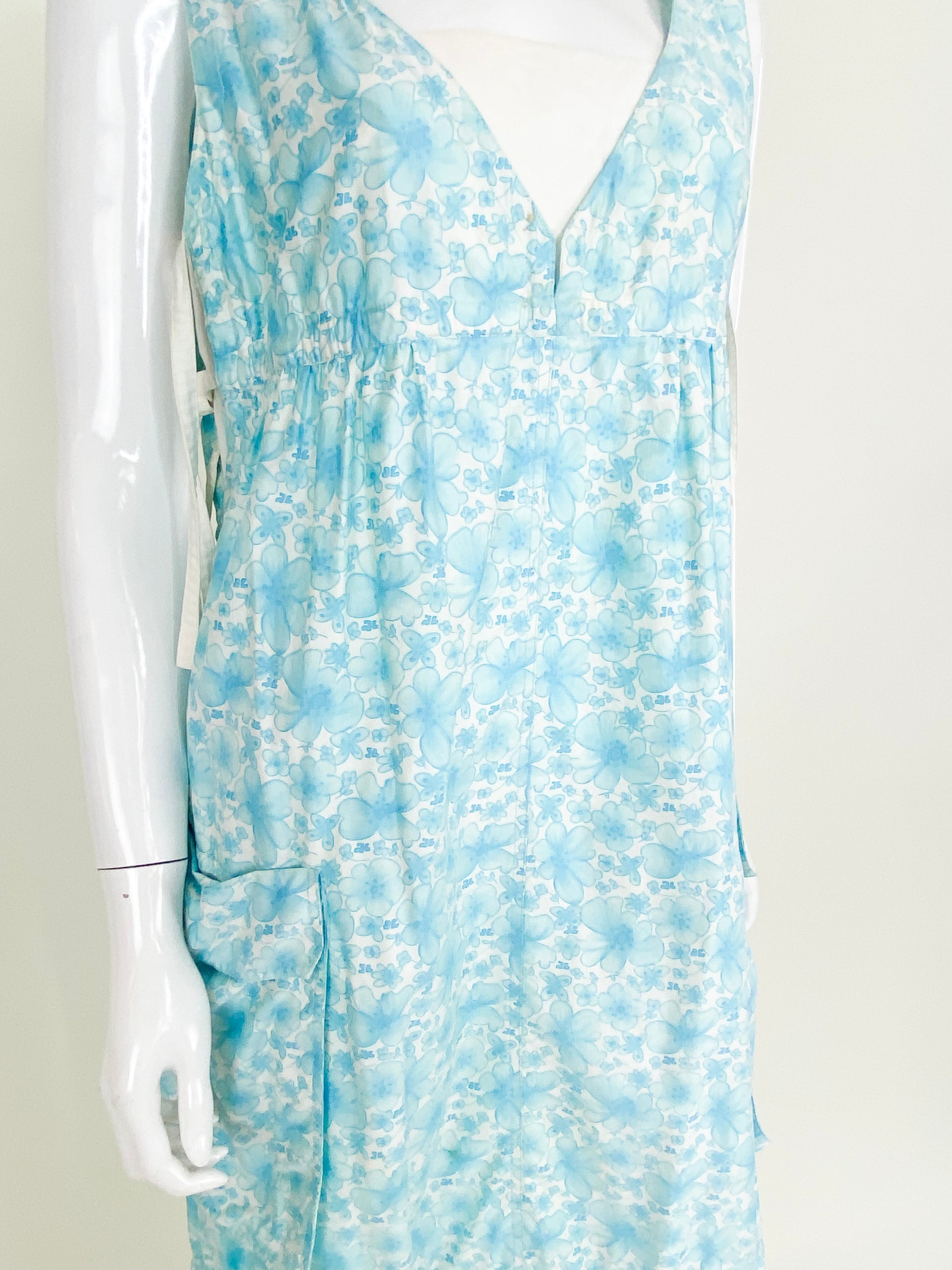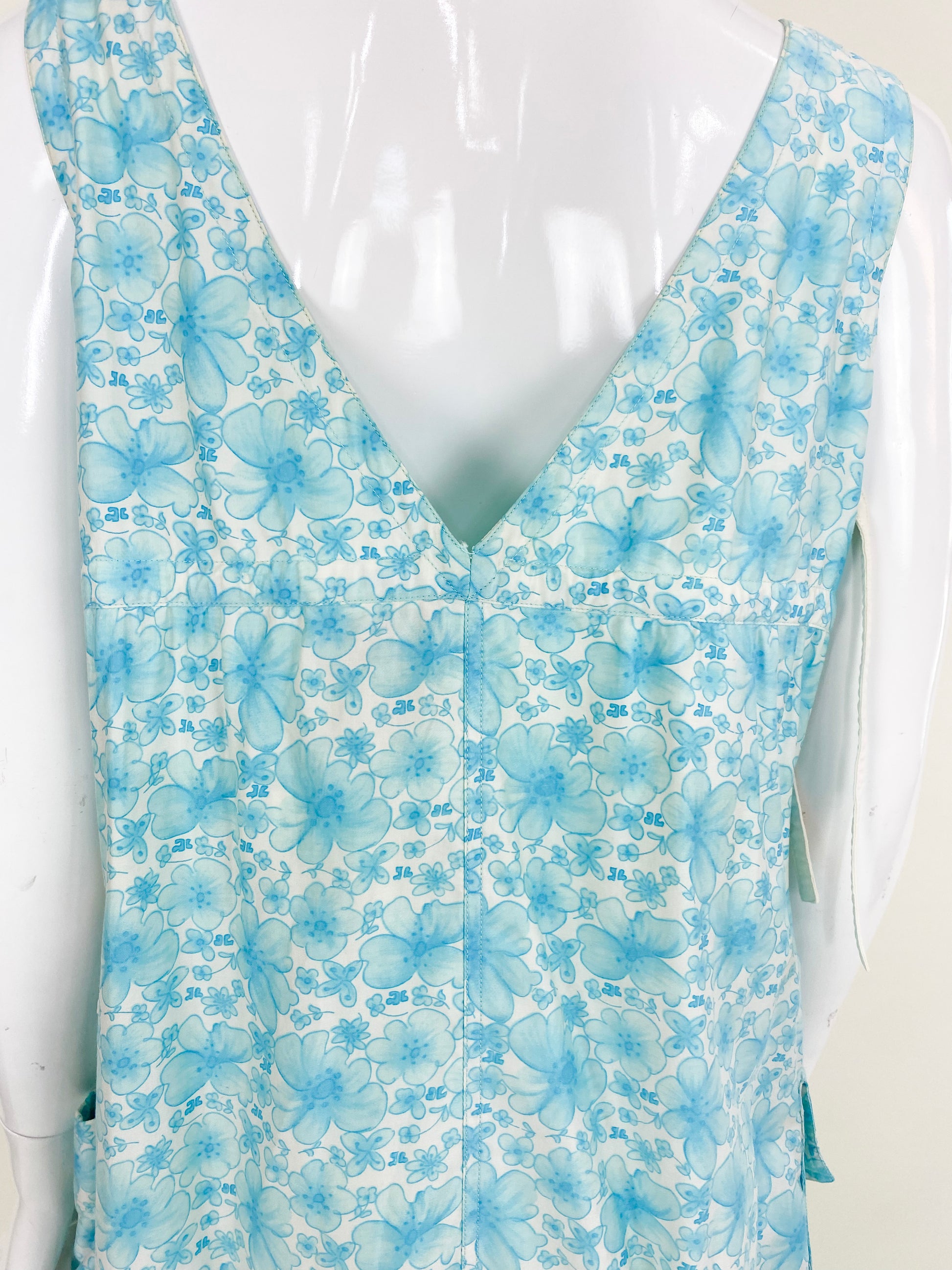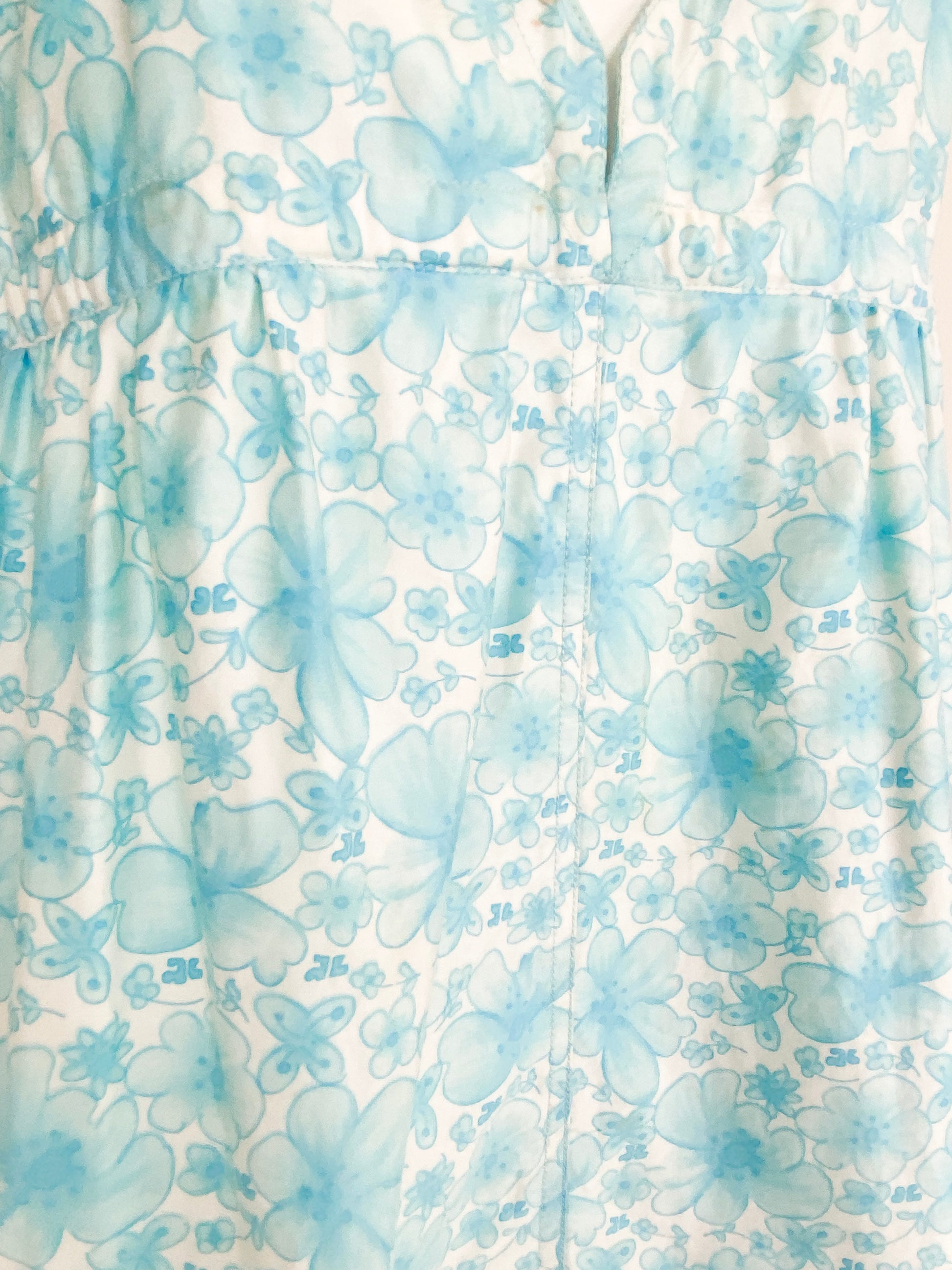 Vintage Courreges Turqouise Floral Smock Dress