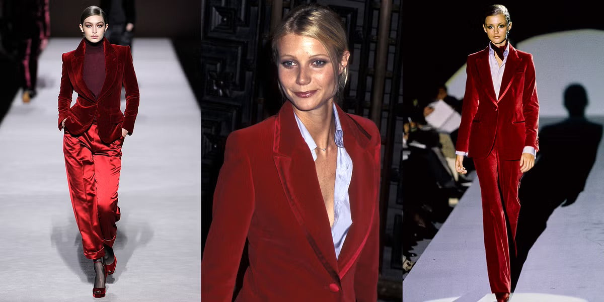 Elevate your holiday style with the Gucci 2007 Cranberry Velvet Suit, a masterful blend of sophistication and boldness. Crafted in rich cranberry red velvet, this suit commands attention, making it ideal for evening events or red carpet moments. Its luxurious texture and refined cut ensure you radiate confidence and elegance throughout the season.