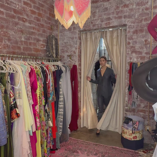 Live out your best late 90s minimalism dream with our Jil Sander ramie silver sheen suit.It is finished in a dark grey with a silver sheen giving it such depth.Pair with a muted pump, or a comfortable loafer.