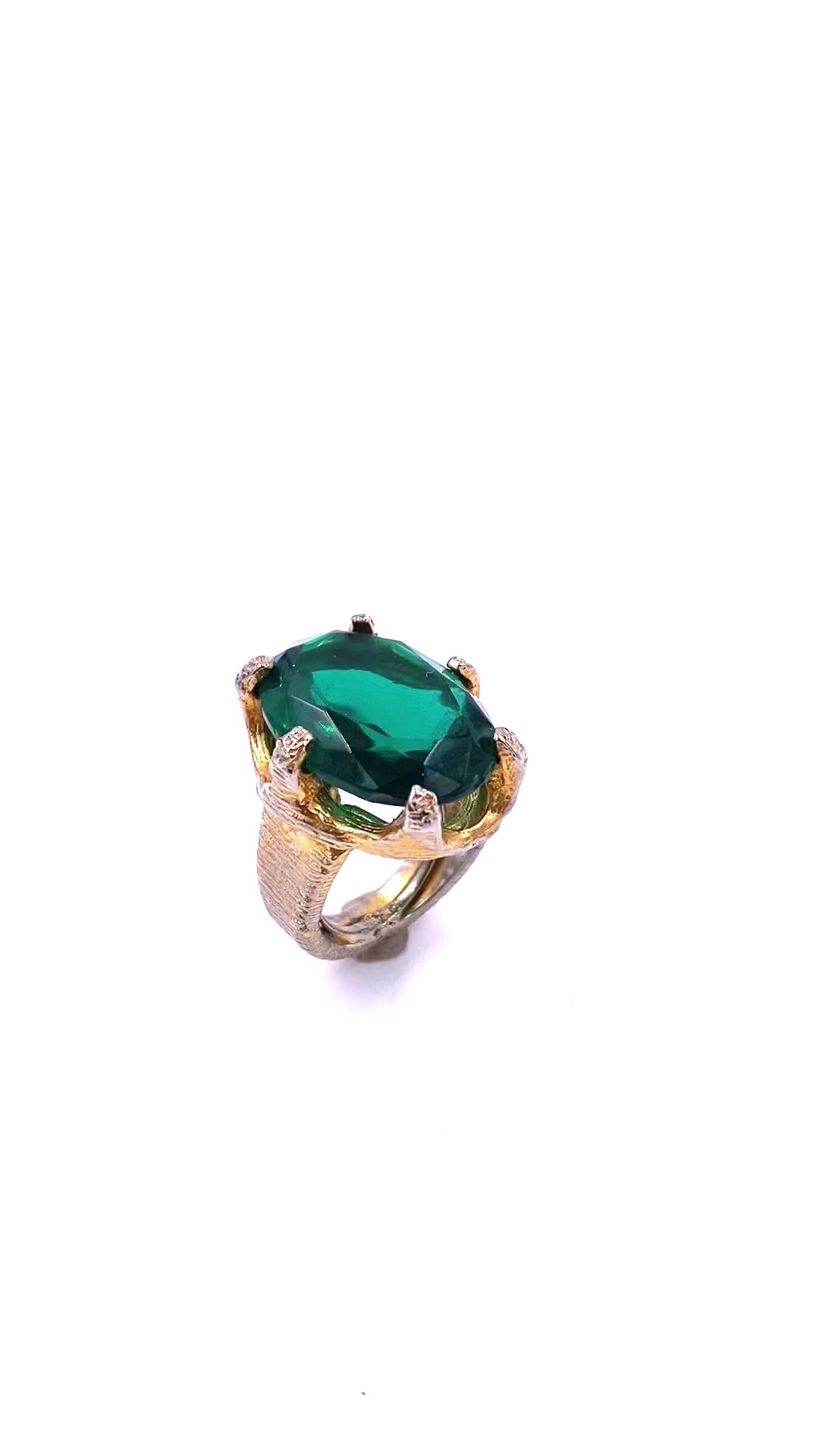 Indulge in the opulence of our Large Emerald Textured Ring. Featuring a strikingly large emerald stone set on a beautifully textured band, this ring is a true statement piece. Elevate any outfit with the luxurious elegance and sophistication of this premium ring. This ring features an expandable interior band that allows you to size up to a size 8.