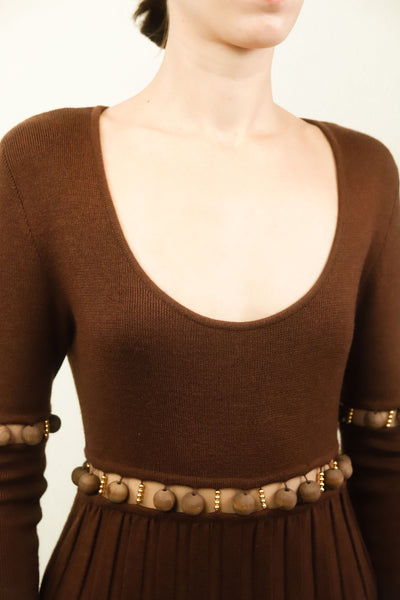 Laura Biagiotti Brown Knit Cut Out Beaded Dress