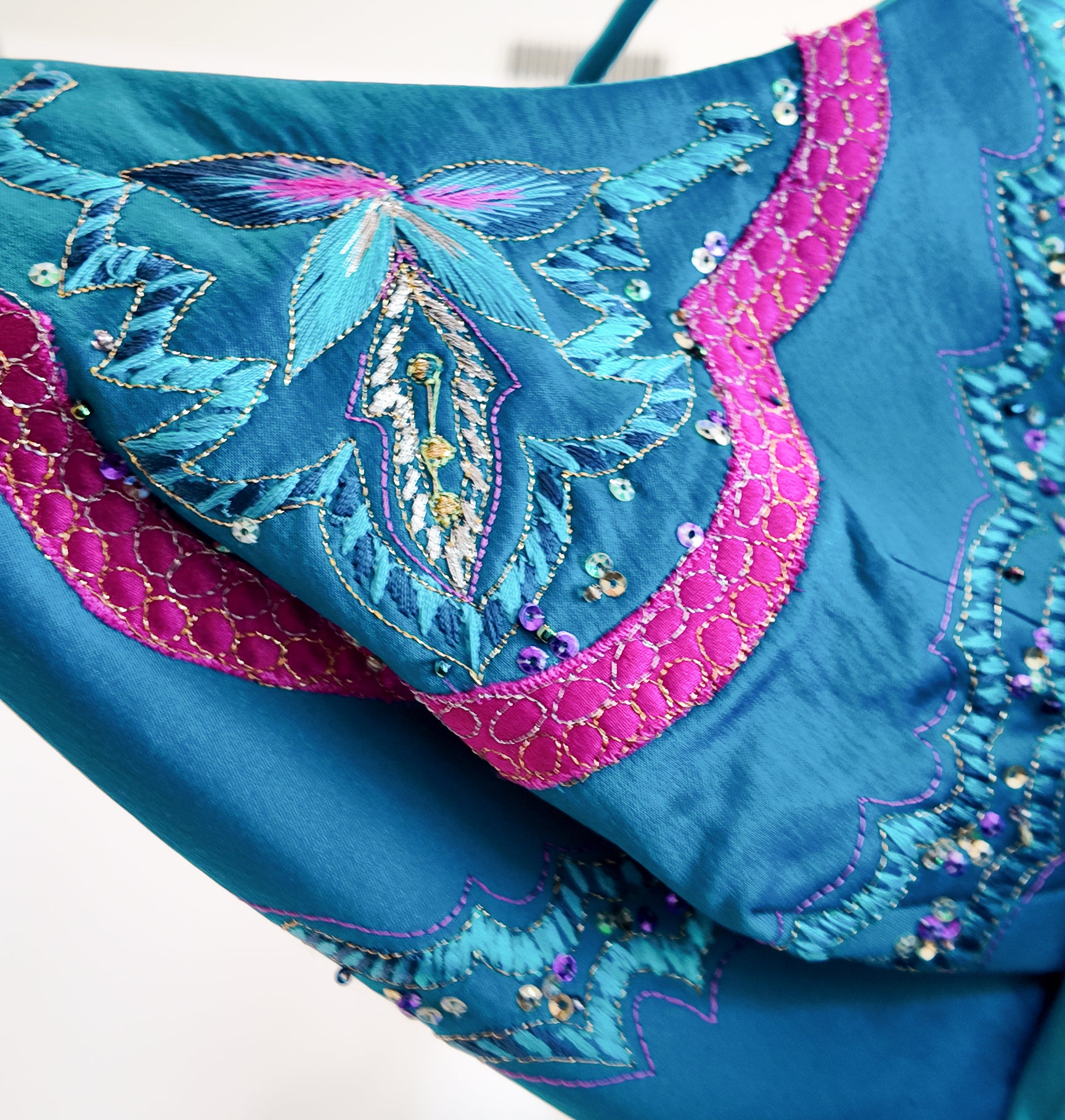 Details: Sequin, Satin Ribbon, Embroidery with metallic thread