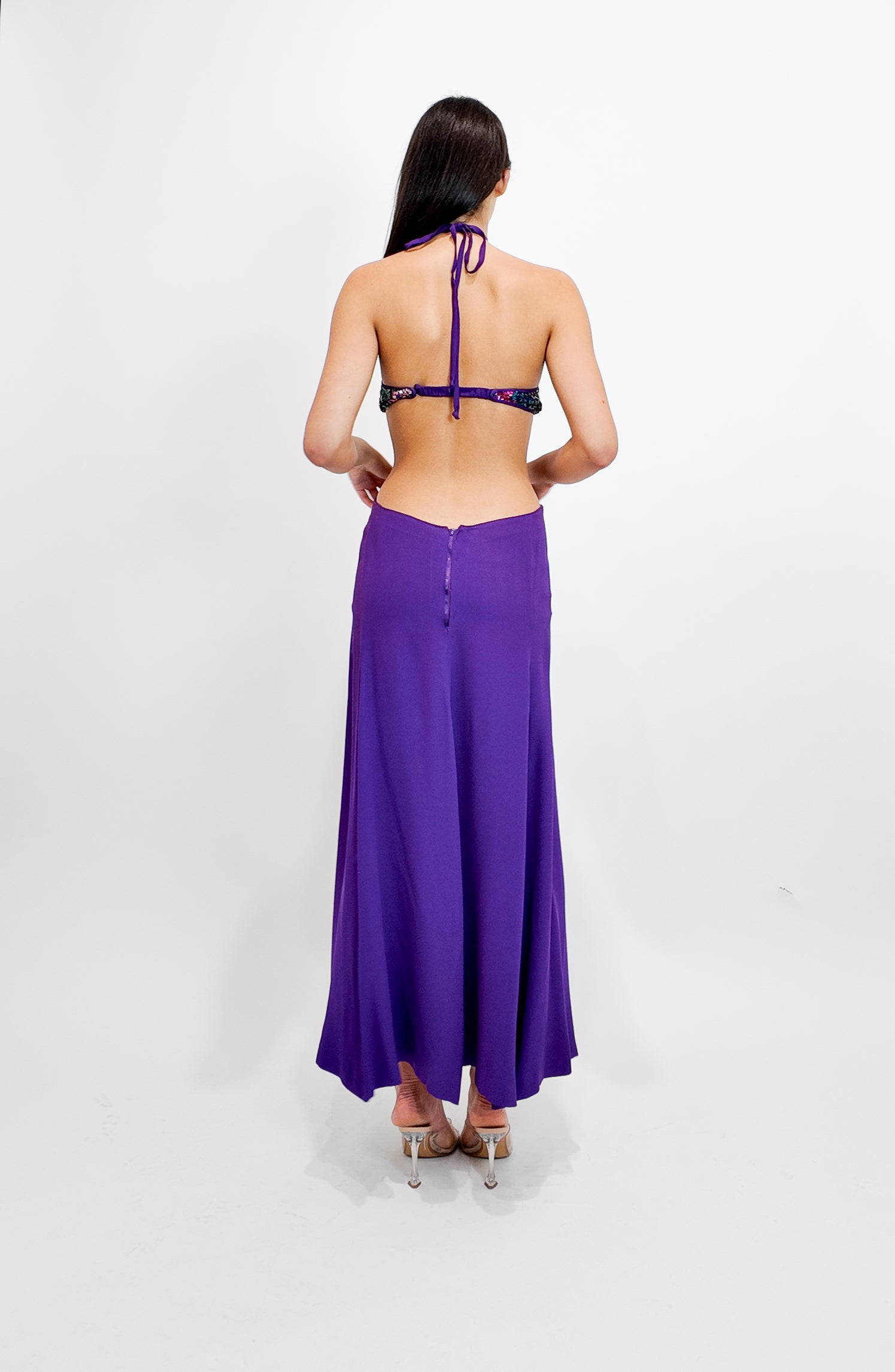 Reinhard Luthier Custom Purple 1970's Backless Sequin Dress