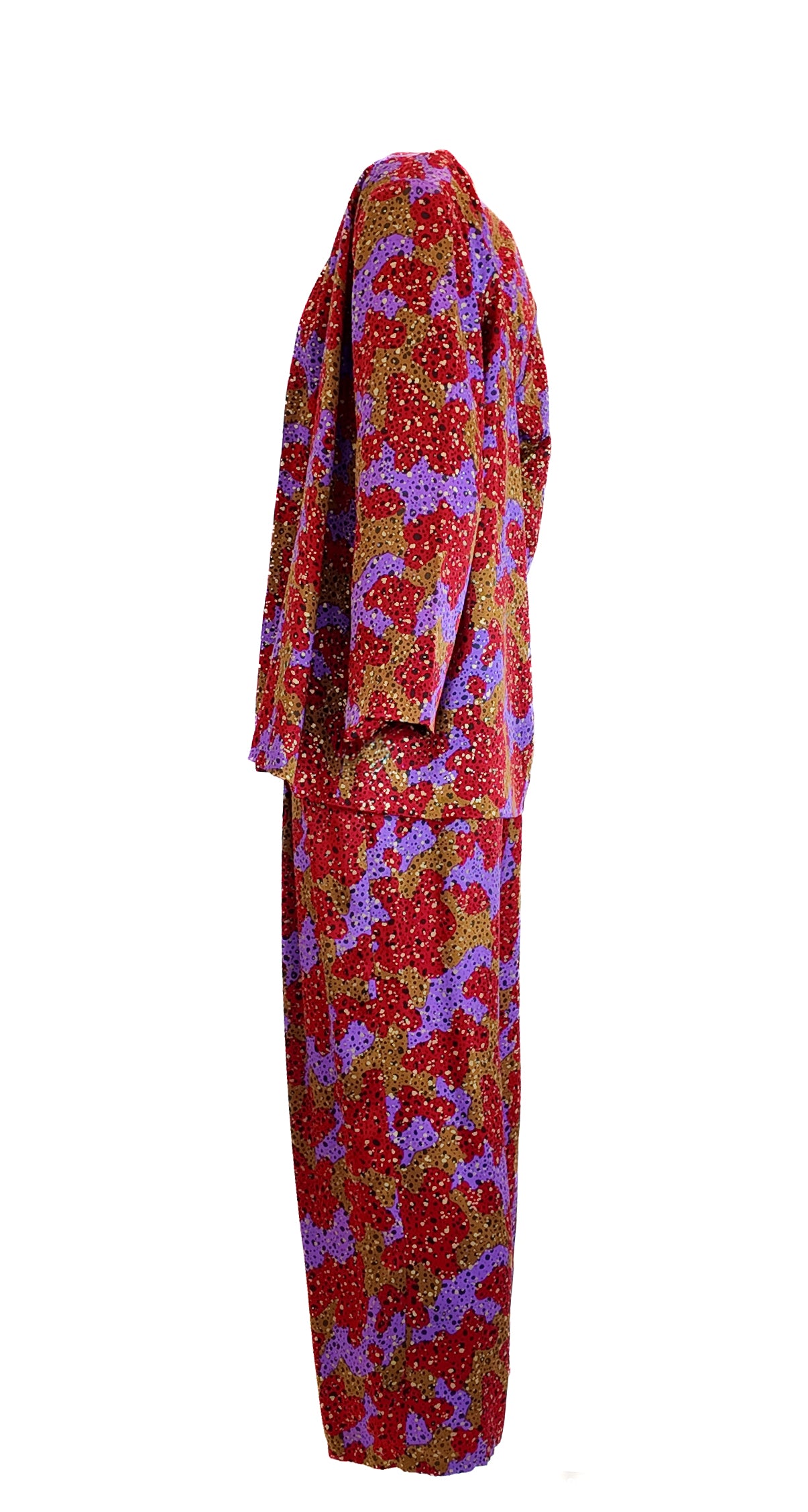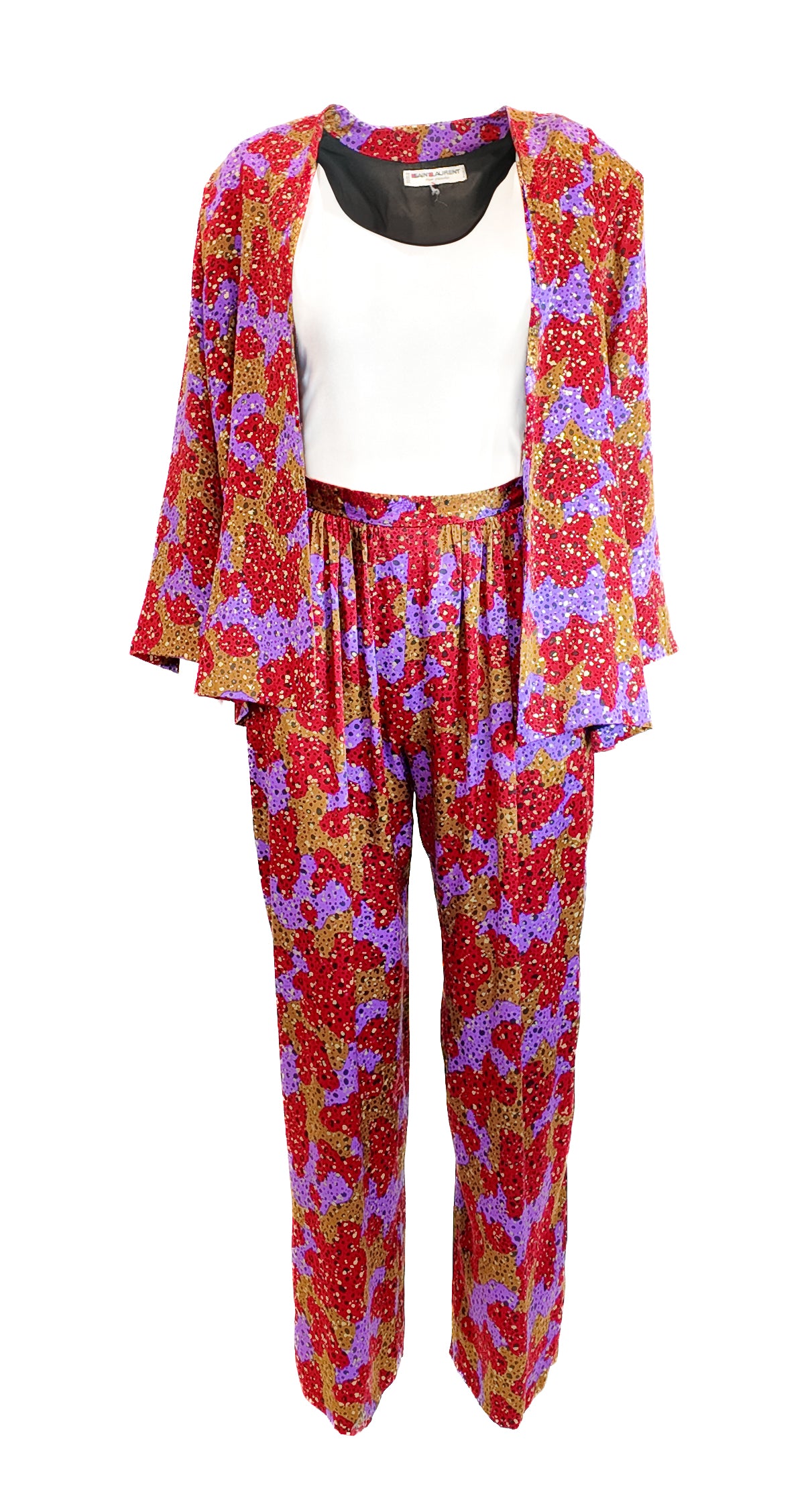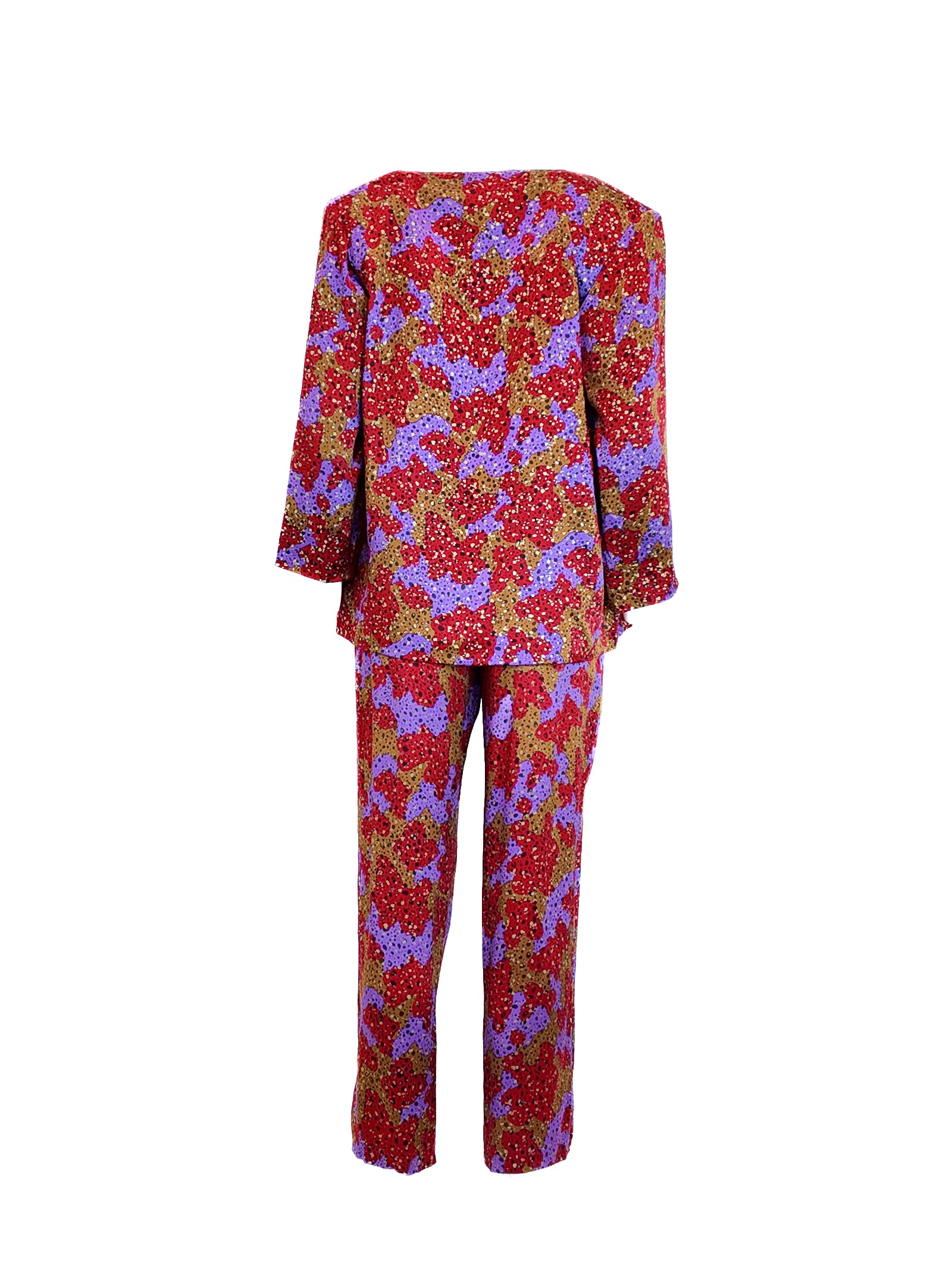 Yves Saint Laurent Rive Gauche Red Printed Silk Pant Set