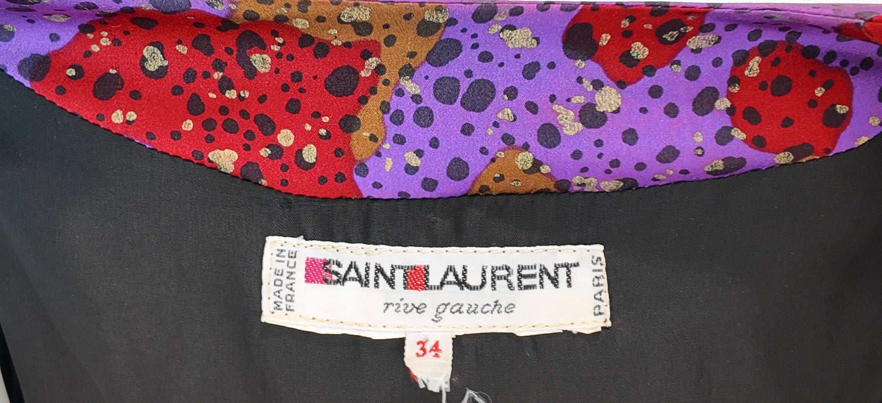 Elevate your wardrobe with the Yves Saint Laurent Rive Gauche Red Printed Silk Pant Set, crafted from 100% smooth satin silk for luxurious comfort and a refined feel. Its bold print captures the iconic Saint Laurent aesthetic, making it a standout piece. Pair effortlessly with a gold, black, chain, or thick belt to define your silhouette and add a touch of sophistication. This set exemplifies expert design and timeless style for those who appreciate high fashion.