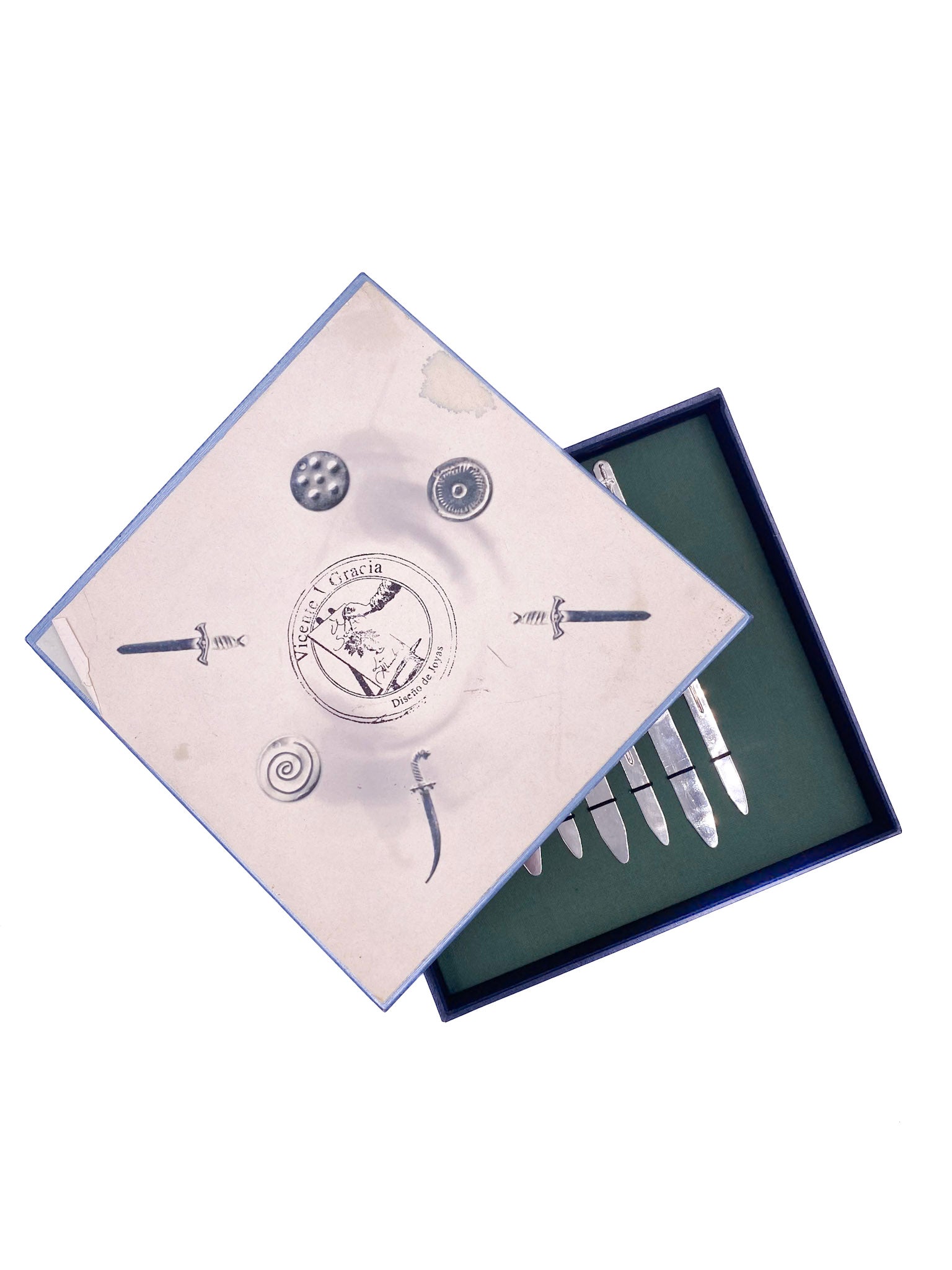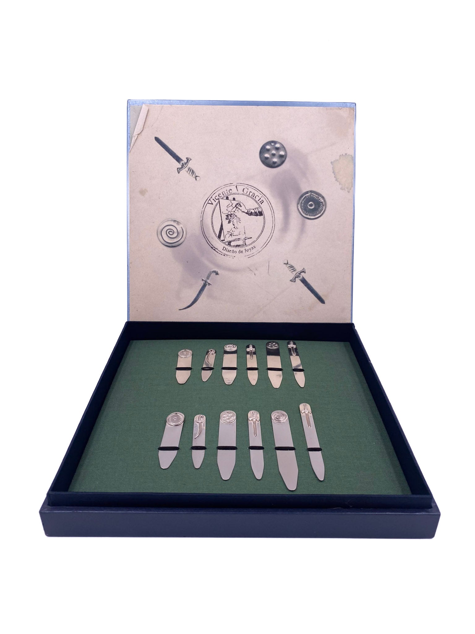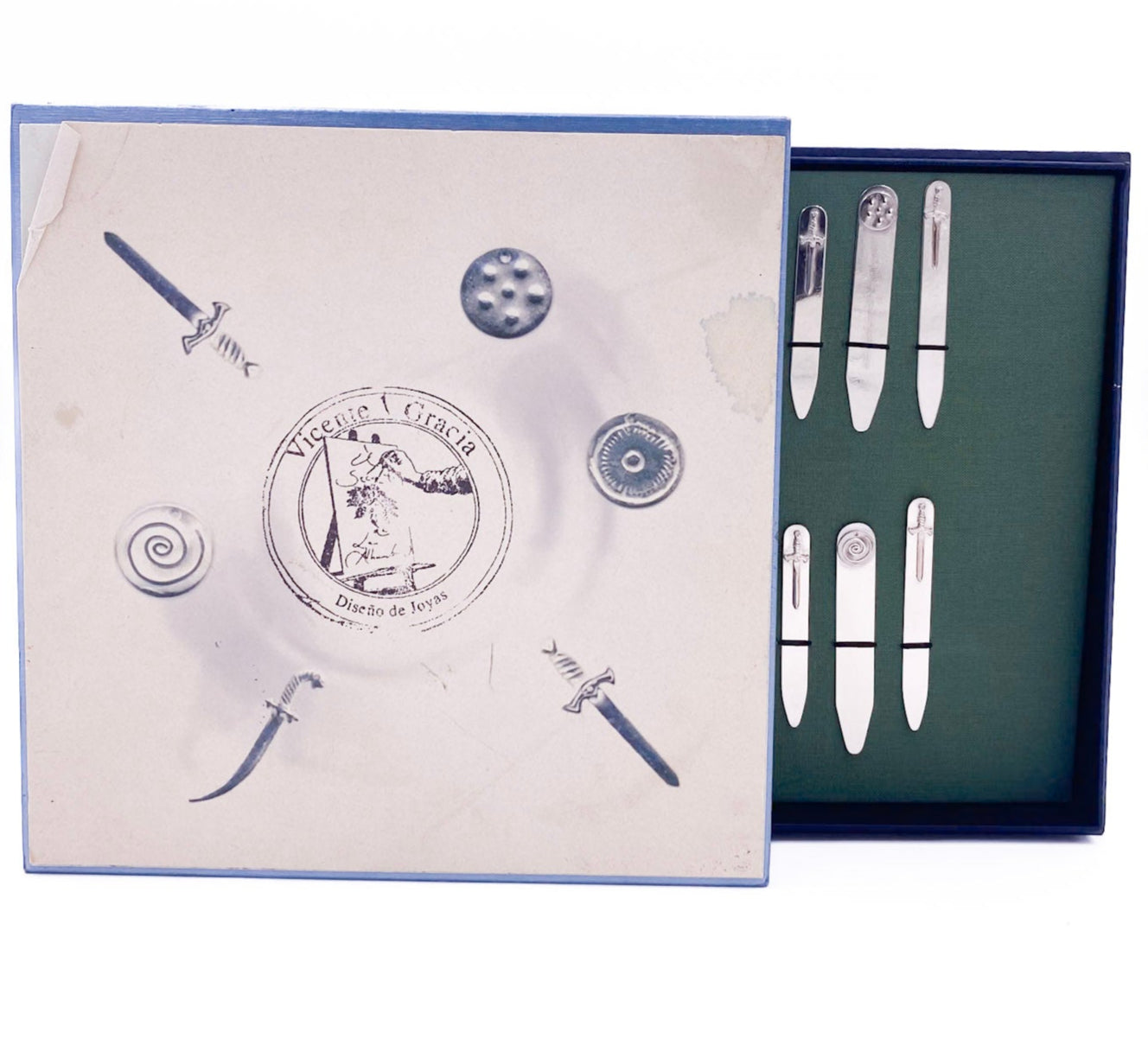 Vintage Vicente Gracia Diseño de Joyas Silver Collar Stays Gift Set