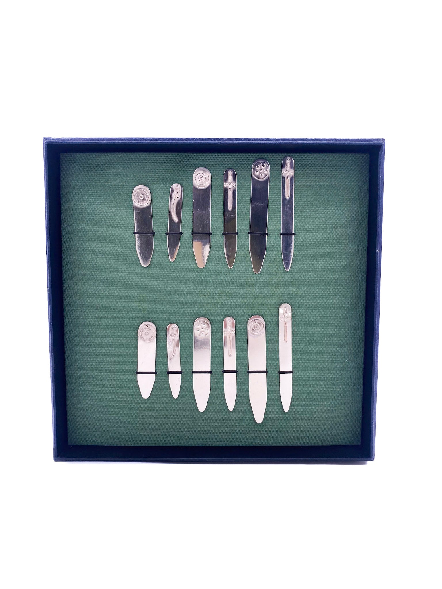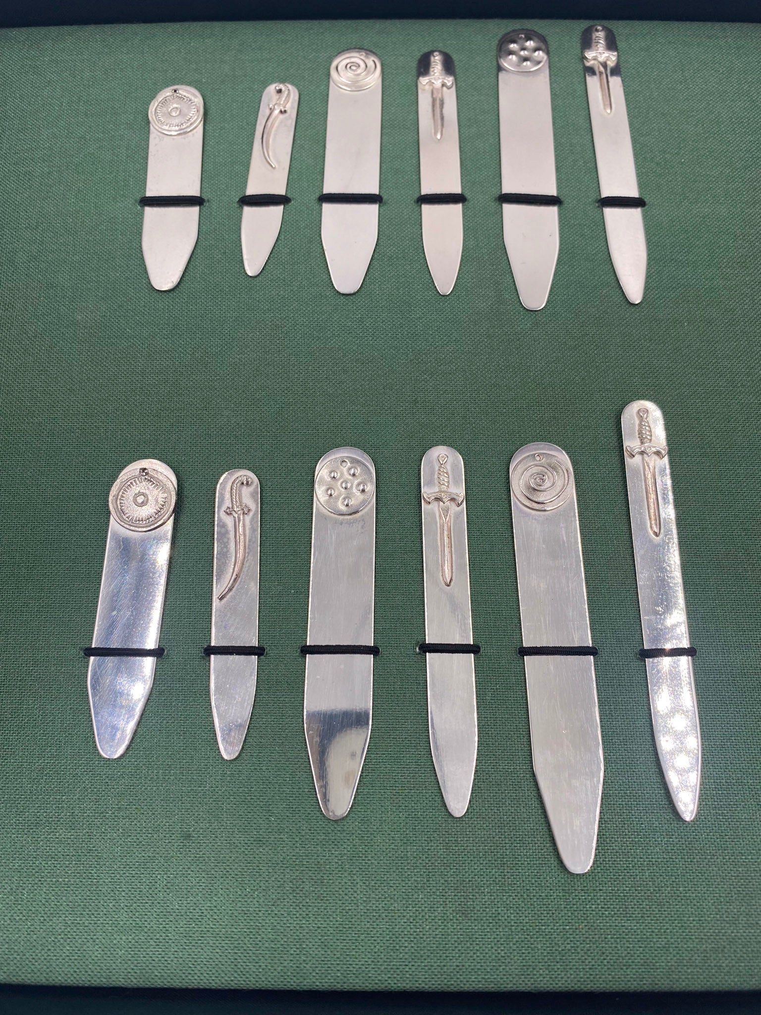 12 collar stays of various sizes