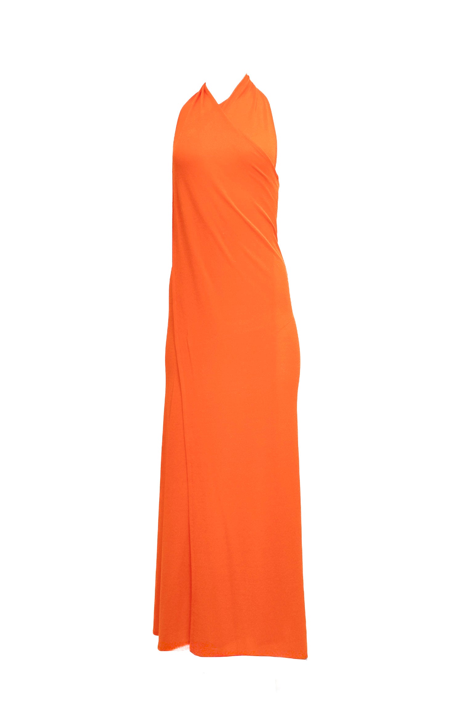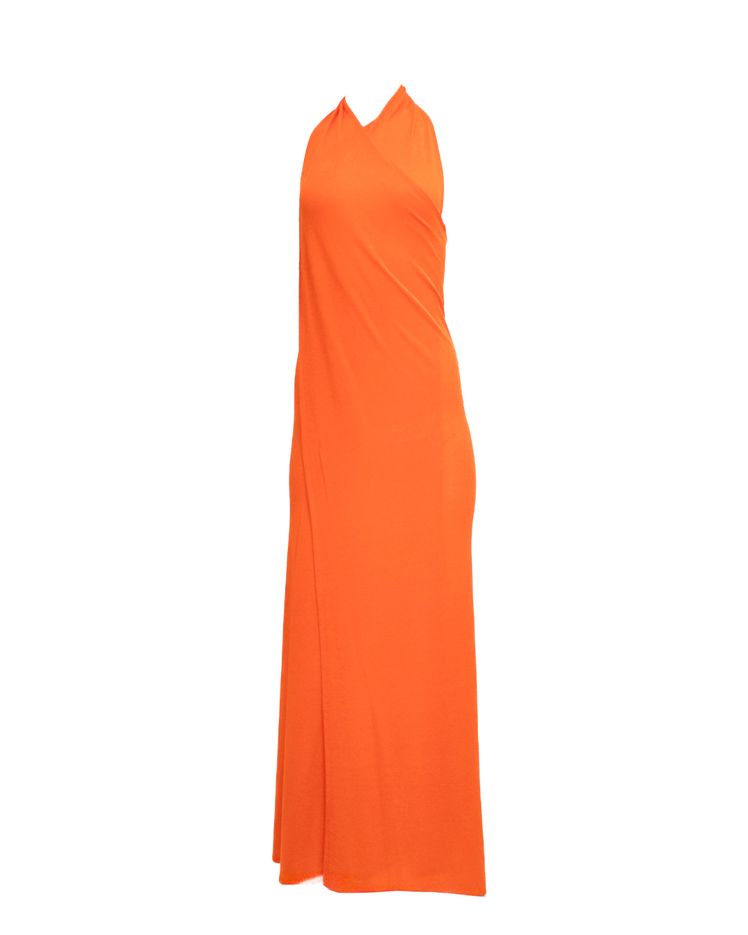 This Vintage 1970s Orange Jersey Wrap Dress features a stretchy fabric that ensures a comfortable, flattering fit. Its bright neon orange hue makes a bold statement, perfect for those who want to stand out from the crowd. The adjustable wrap design allows you to tie it around your neck and customize the fit to your preference, making it versatile enough to dress up or down for any occasion.