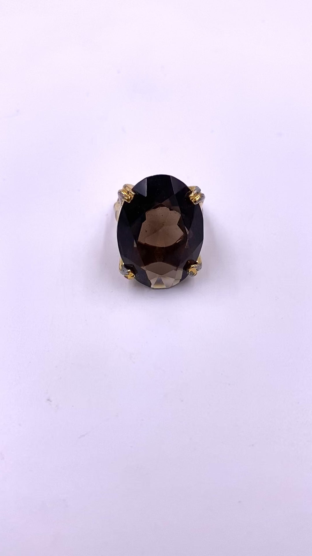 Indulge in luxury with our Smoky Quartz Oval Cocktail Ring. The smoky quartz stone, set on a delicate gold band, exudes elegance and sophistication. Elevate any outfit with this stunning statement piece that adds depth and glamour to your look.