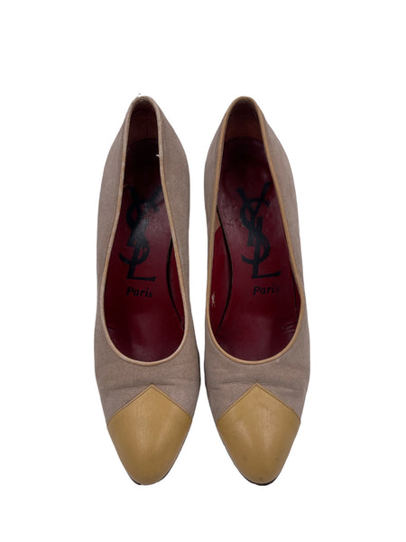 For the woman who loves the classics, these suede heeled pumps are calling your name. These pumps come in a beautiful tan suede with a cream colored leather toe. Style these with some vintage denim, a vintage silk blouse, and a woven basket purse for the ultimate french muse look.